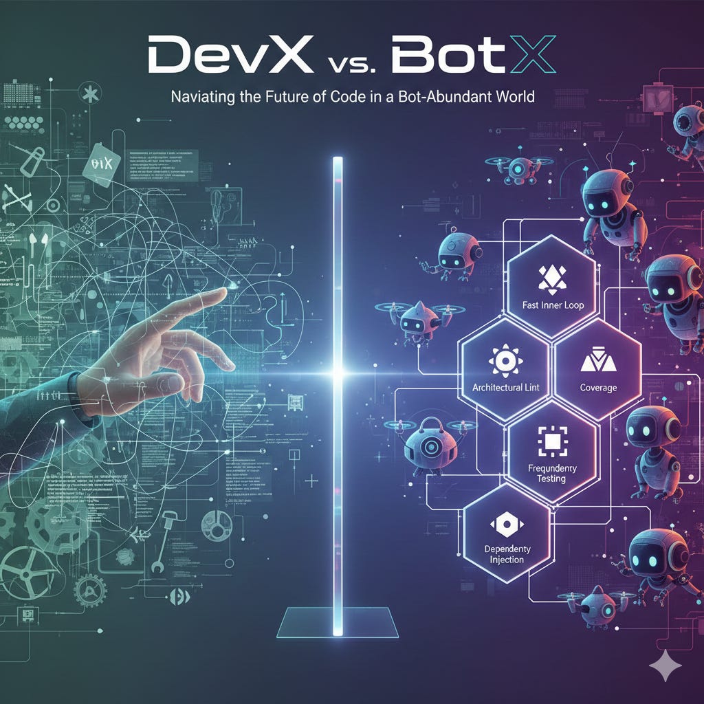 While DevX is about providing tooling and infrastructure to other developers, BotX will be about creating the policies not drown and thrive in a code ambundant world.